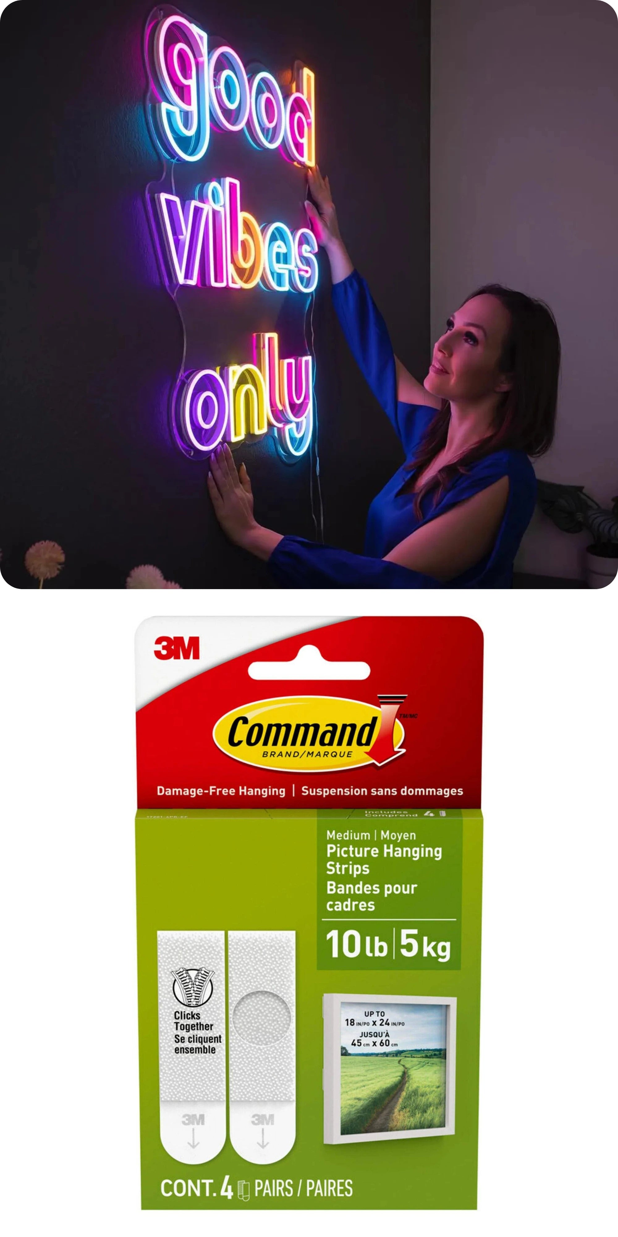 3M Command Hanging Strips are not included with your sign. If you choose to use them for mounting, follow these guidelines to avoid your sign ending up on the floor.