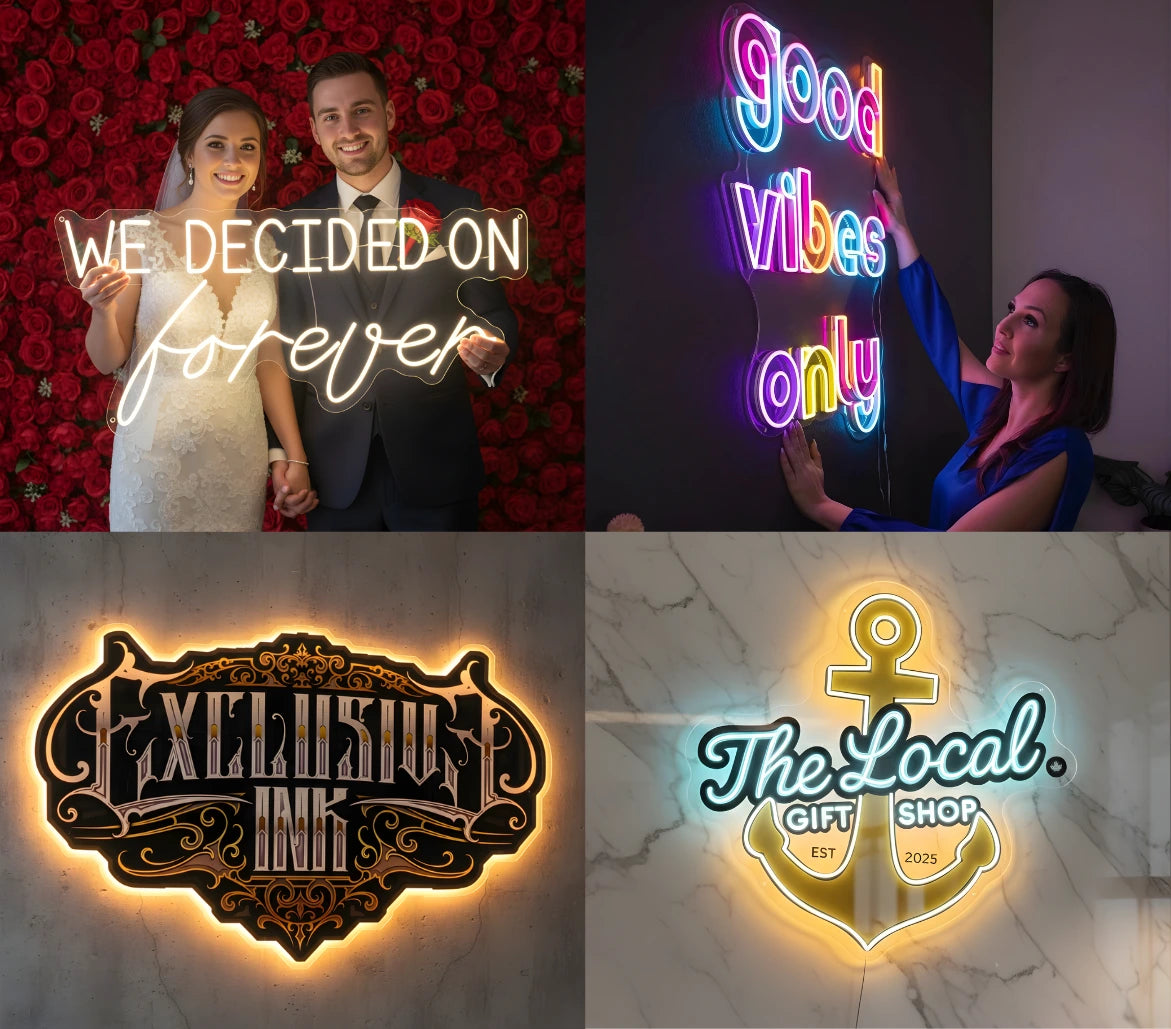Make your next event unforgettable with custom neon signage! Whether you’re hosting a wedding, party, corporate event, or any special occasion, Light Your Way can create personalized neon signs that enhance the ambiance and leave a lasting impression. From elegant wedding backdrops to eye-catching event signage, we provide free mockups and competitive quotes to help you visualize your custom neon signs before production. With our wide variety of design options, your special event will be lit with vibrant, high-quality neon lights. Upload your event details and design today to receive your custom mockup and quote.